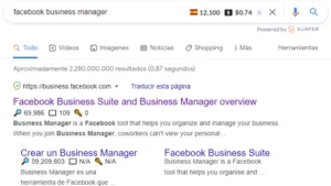 - Buscamos “Facebook Business Manager” en Google y entramos en el primer enlace.