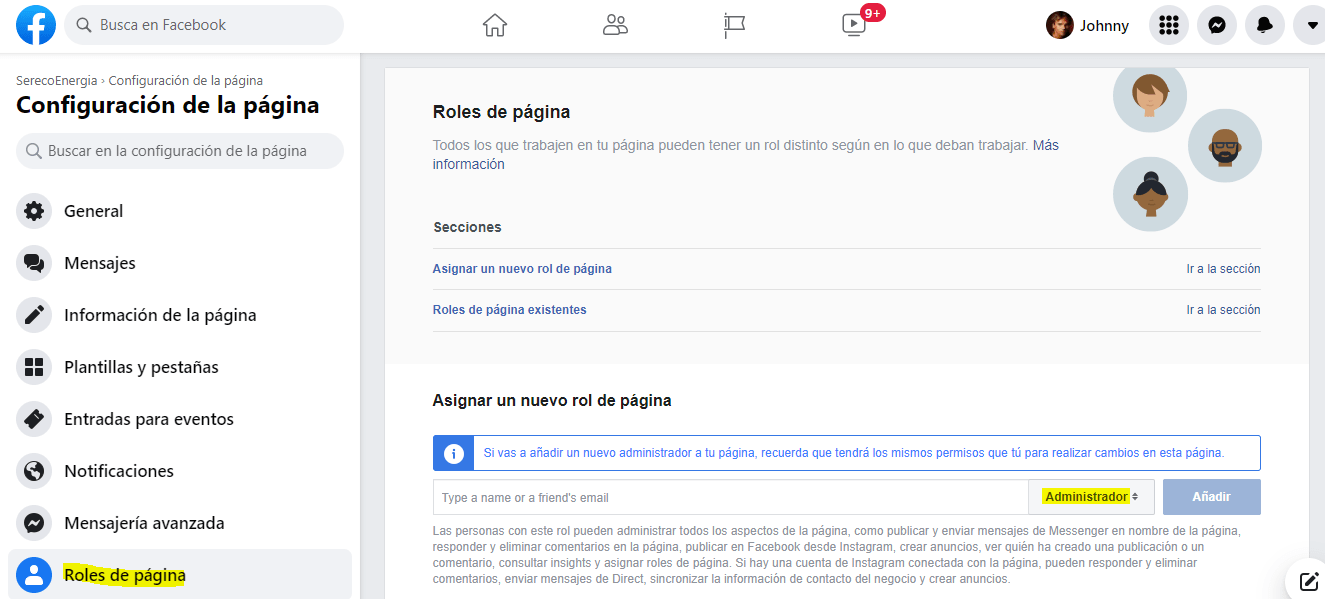 5. Se añade el perfil de «Johnny Wola» como administrador.